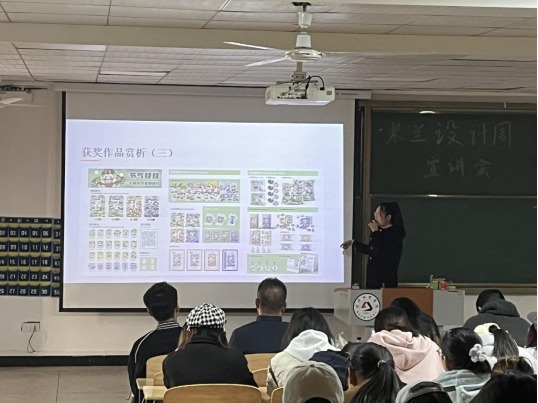 宣讲过程中,高华老师特别分享了往届的优秀获奖作品,为同学们提供了极具价值的创作灵感。她提到,往届大赛中不乏将“非遗”元素与现代设计语言完美融合的佳作,例如有同学以中国传统“二十四节气”为灵感,创作出既富有文化内涵又符合现代审美的视觉系列作品;还有同学深入挖掘民间艺术,将“十二门神”的形象进行再设计,赋予其时尚、年轻的潮流感,让古老的民俗文化焕发出新的生命力。此外,主讲人还专门针对视频类作品进行了分析,指出该类别涵盖日常生活记录、圆明园等历史文化遗址的数字化演绎,以及通过游戏引入主题等多种形式,鼓励同学们打破传统思维,尝试多媒体创作。