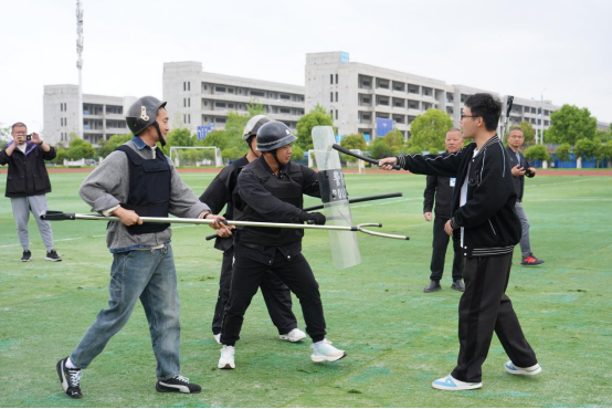 “全体注意——齐步走!”随着一声嘹亮的口令,退役复学学生队列整齐、步伐铿锵地进入演练场。他们与学校保卫处人员迅速集结,共同拉开应急处突演练的序幕。面对模拟突发安全事件,退役复学学生迅速反应,分工协作,从封控现场到控制“可疑人员”,一招一式间尽显训练有素。他们不仅参与防暴处突实操,还现场为围观学生讲解应对突发安全事件的自救互救要点。演练过程中,退役复学学生角色投入、动作规范,保卫处人员配合默契,整场演练节奏紧凑、教育性强,在场观看的同学们纷纷表示“安全感满满”“学到了真本事”。