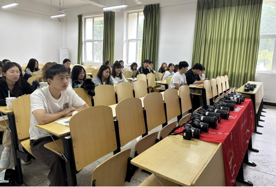理论讲解结束后,同学们在咔拍数码团队和毛蓉老师的带领下,带着企业带来的专业相机走出教室,在校园的林荫道、教学楼前开启实地拍摄练习。有人专注调整参数,尝试用不同光圈拍摄树叶的虚实变化;有人围绕建筑取景,实践对称构图与引导线构图的差异;还有同学两两一组,互相充当模特,探索人像拍摄中的光影运用。大家边操作、边交流,将课堂上学到的相机知识与视听语言课程中的“画面叙事”需求结合,迅速把理论转化为实践能力。