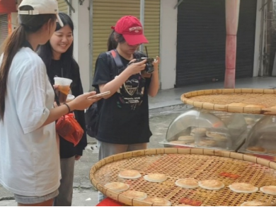 (同学们了解当地特色饮食文化并取景拍摄)