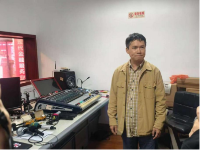 江门日报社新媒体中心副主任司徒俊杰带领师生依次参观了导播室、化妆间与核心演播区,揭开新闻节目制作的幕后流程。演播厅,是新闻人的“梦想舞台”。专业的灯光、多机位的摄像机、复杂的导播台,瞬间将同学们带入“新闻发布会”的实景现场。22传播2班的裴毛妮同学勇敢走上主播台,亲身体验“新闻发言人”的角色,台下同学笑赞:“还挺有主播范儿!”。