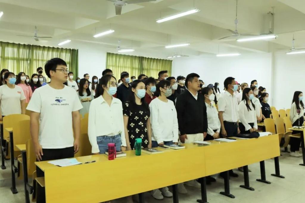 随后,全体起立,国歌奏响,众人齐唱,在激昂有力的歌声中yL23411永利学生党支部换届选举大会正式开始。